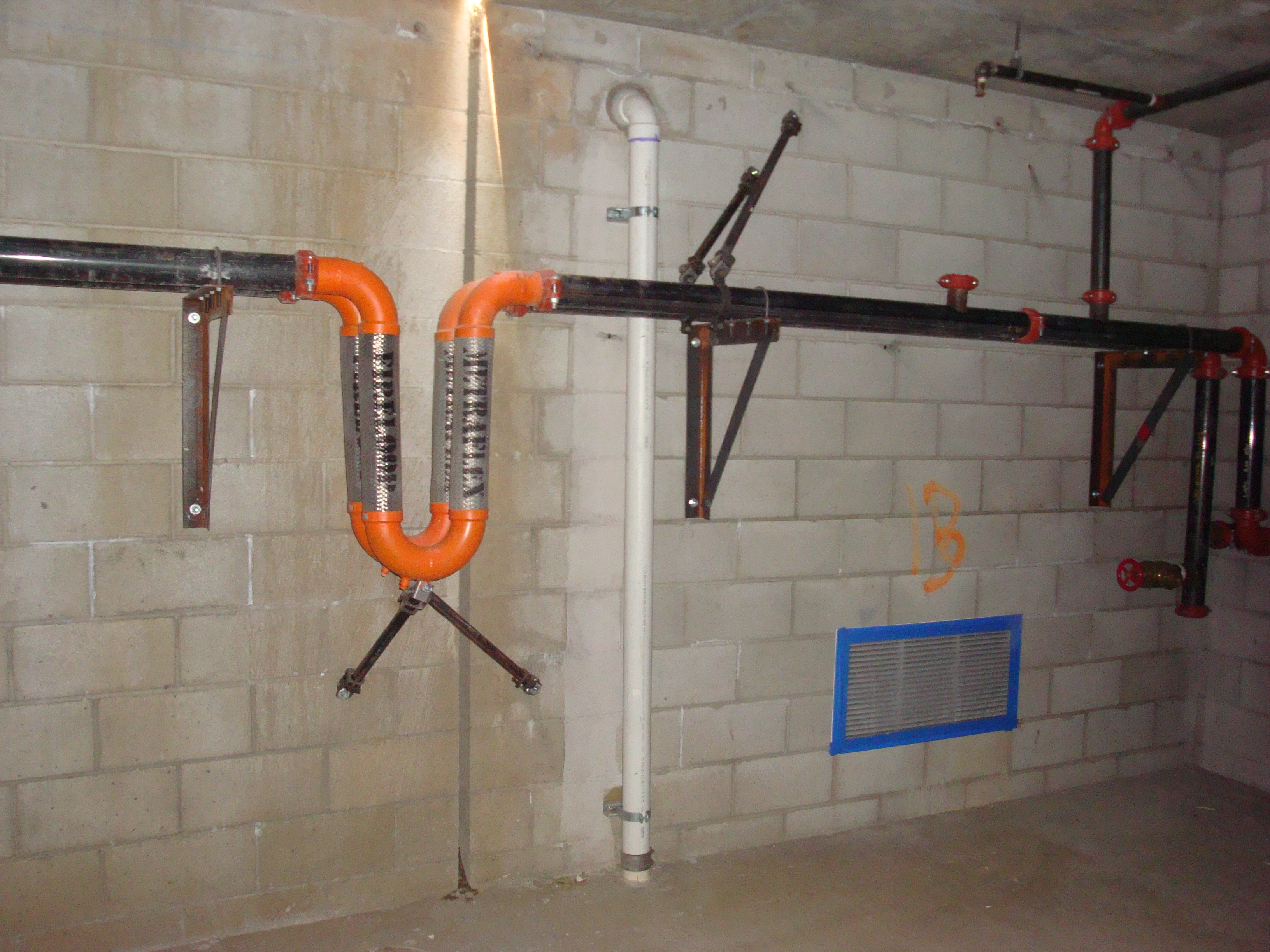 Construction phase - Gas piping serving apartments above parking structure