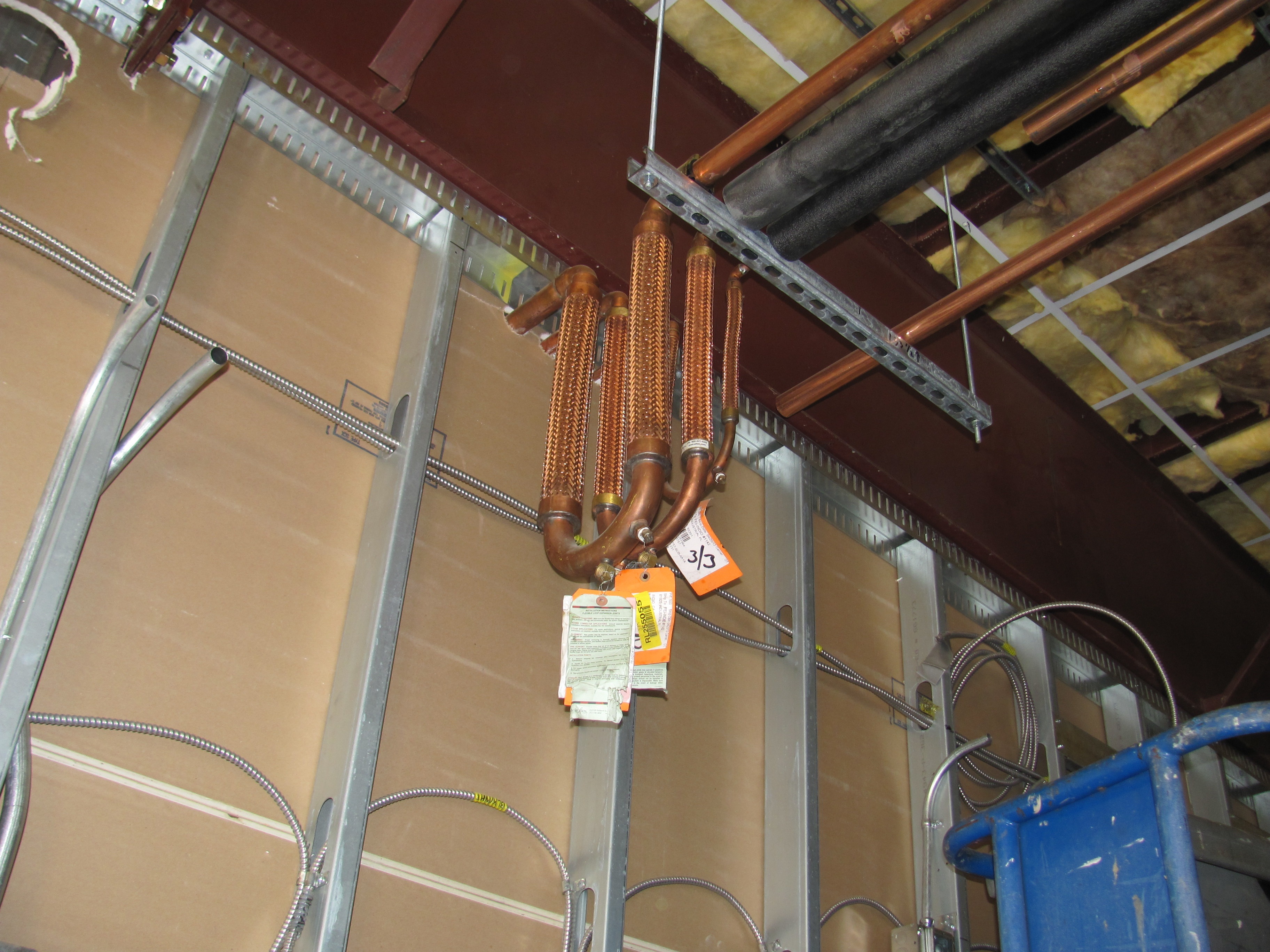 Construction phase - Seismic loops for plumbing piping between hangar building and office building. |