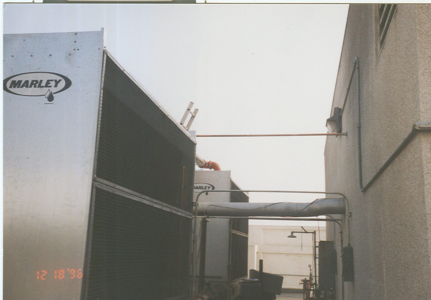 Replacement of two existing R-113 chillers with two 400 ton R-134a water-cooled centrifugal chillers in chiller room, replacement of induced-draft cooling tower, installation of plate-type heat exchanger, all at grade, at manufacturing facility.